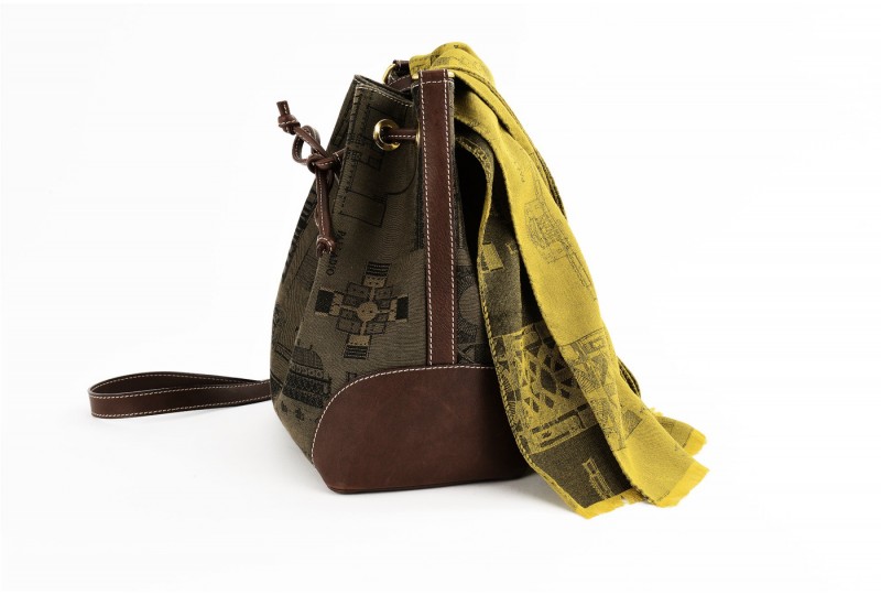 100% tapestry tissue with Palladio projects 100% genuine leatherSize: L22xA24xP2 cmAvailable colors: bottle green + leather