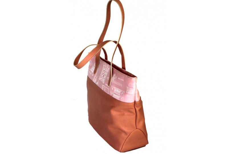 trapezoid big shopper bag 100% tapestry tissue with Palladio projects 100% genuine leather Size:L44XA26XP20 cm Available colors: camel + leather grape + aubergine moka + darkbrown gray + black
