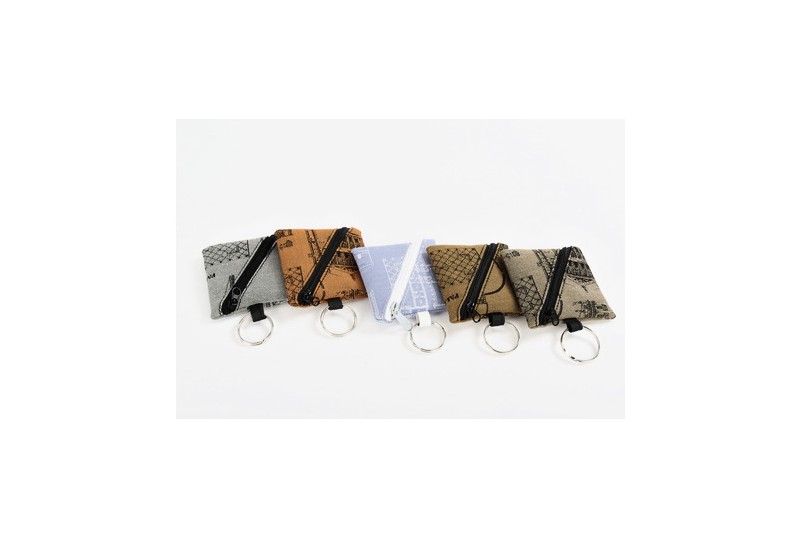 Squared coins pursue with diagonal zip and key-ring